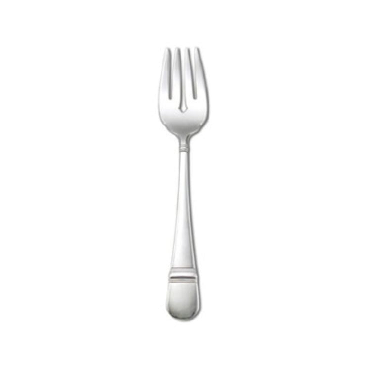 The 1880 Hospitality 1119FSLF Oneida® Salad/Pastry Fork is a professional-grade utensil designed for precise presentation and durable performance within commercial foodservice environments. Measuring 6-3/4 inches in length, this silver-plated fork features a banded teardrop-shaped handle that enhances ergonomic grip and aesthetic appeal. Constructed with high-quality silver-plating on a robust base material, it offers corrosion resistance and long-lasting shine. Specifically suited for high-volume salad bars, pastry stations, or buffet service, this non-stock, Astragal-inlaid fork addresses the need for elegant yet functional utensils in upscale dining and hospitality operations, providing clear technical advantages for fine dining presentation and efficient workflow integration.