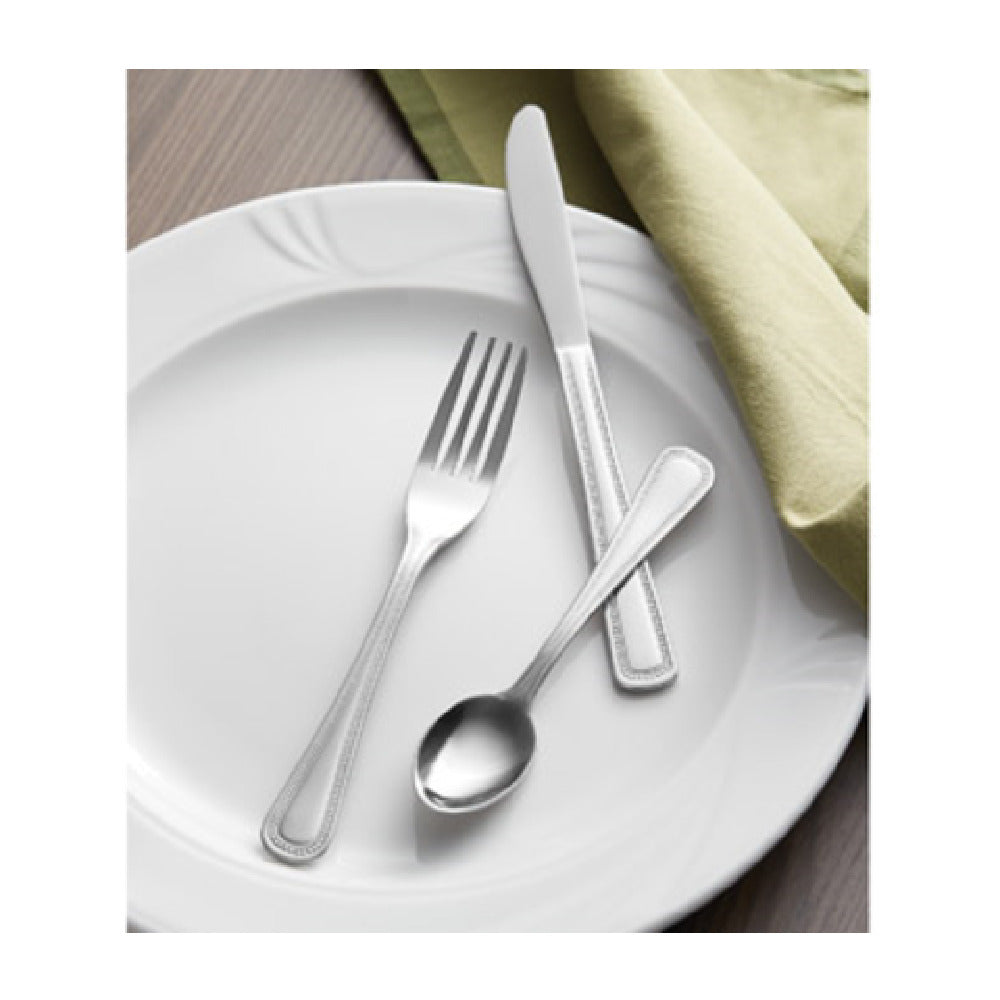 The 1880 Hospitality B595FOYF Oyster/Cocktail Fork is crafted from high-quality 18/0 stainless steel with a length of 5-7/8 inches, weighing approximately 1.88 lbs per pack. It features a beaded border detail and a rounded handle design to facilitate comfortable handling during continuous use. This fork is built for durability and consistent performance in commercial dining environments, capable of withstanding frequent dishwasher cycles without corrosion. Its polished finish ensures an appealing presentation, ideal for seafood service stations and upscale restaurant settings. The utensil's compact size allows for precise seafood extraction and presentation, making it a reliable choice for high-volume operations.