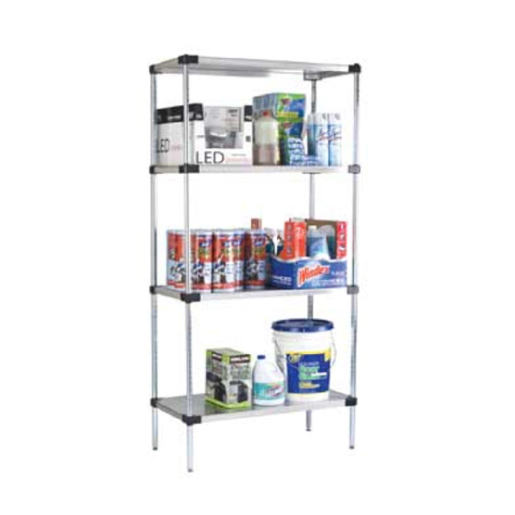 This solid foodservice shelf delivers high performance with an 800 lb. capacity, reinforced die-cast corners, and marine edge design for spill containment. Crafted from stainless steel, it ensures corrosion resistance, durability, and straightforward cleaning, making it suitable for wet or dry storage in busy commercial kitchens. Its substantial load-bearing capacity supports heavy equipment and bulk supplies, aligning with demanding workflow needs.
