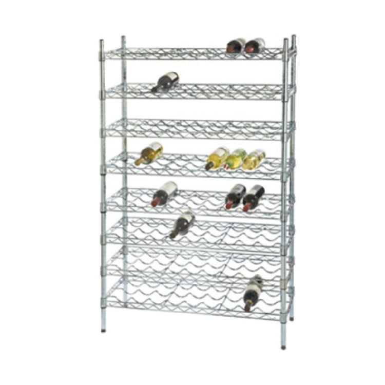 The FWSK4854CH model from 1880 Hospitality is engineered for robust performance in commercial wine storage. It features a chrome finish on a steel framework, with dimensions of 48" width, 14" depth, and 54" height. The unit supports a total of 96 bottles across (8) wire shelves, with a weight of approximately 67.76 lbs. Its NSF approval confirms compliance with sanitation standards for foodservice environments. The shelving kit requires no electrical input or cooling system, making it straightforward to install and maintain. With a freight class of 70, it is suited for dry storage in restaurants, bars, and hospitality facilities, offering a stable, corrosion-resistant framework for wine bottle organization and space efficiency.