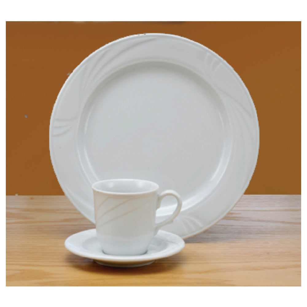 This grapefruit dish offers a durable porcelain construction with embossed surface texture for slip resistance and enhanced aesthetic appeal. Its 6-1/2" diameter and 10-7/8 oz. capacity support high-volume fruit servings, while its medium rim facilitates easy handling and portion control. The dish withstands commercial wash cycles and daily wear, ideal for plate presentation in hotel breakfast buffets and restaurant serving stations. Designed for seamless integration into high-turnover hospitality workflows, it ensures consistency and ease of cleaning.