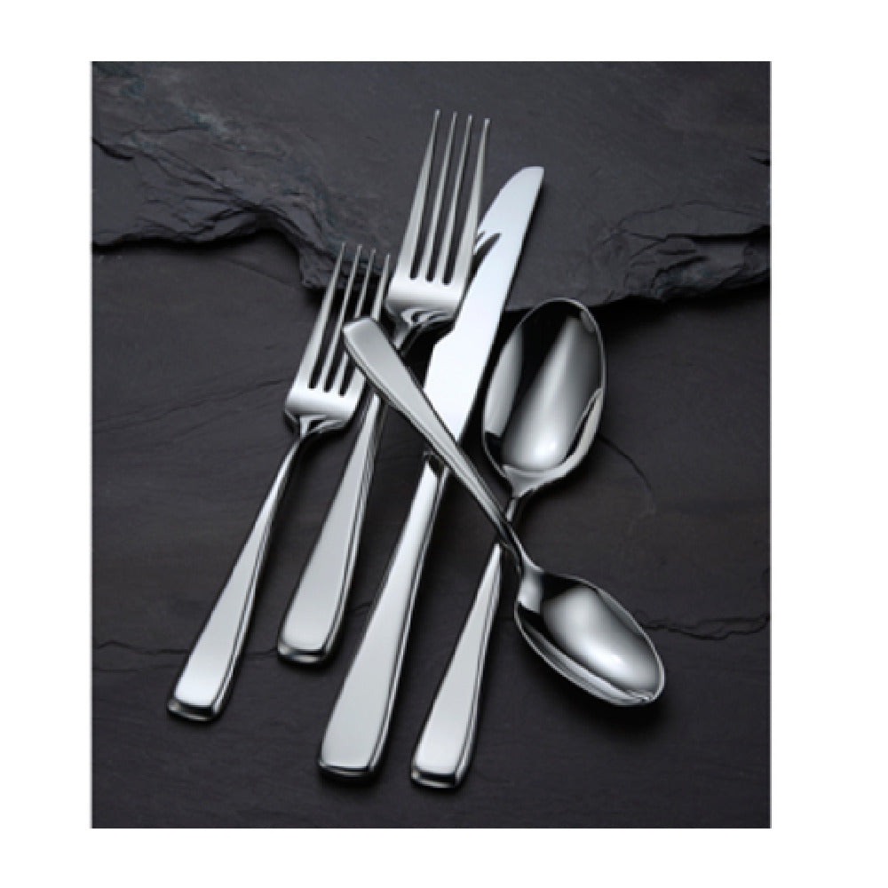 The 1880 Hospitality V936KBVF butter knife features a self-contained construction with a length of 7 inches and a width of 7 inches, weighing 2.03 lbs. Its silver-plated material offers enhanced corrosion resistance, suitable for frequent cleaning and sterilization. The product is built to withstand typical operating temperatures encountered in commercial dishwashing and sanitizing processes. The design includes a beveled edge that facilitates precise butter application without damaging the wrapper or bread. Dimensions and finish ensure compatibility with standard flatware storage and service stations, making it a dependable choice for high-volume foodservice settings. This utensil’s construction supports regular cleaning routines, with a focus on maintaining a professional appearance, while its perimeter™ finish adds aesthetic durability.
