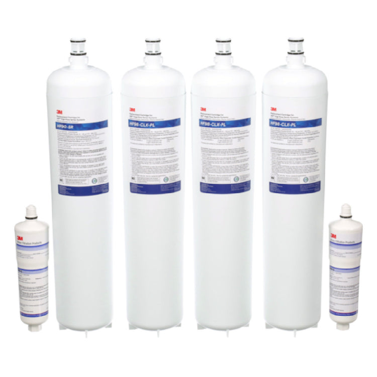 The 3M DPP398-CLX-PL CARTPAK (5613836) 3M™ Water Filtration Cartpak (Cartridge Kit) is a commercial-grade water filtration system engineered for high-capacity industrial and foodservice applications. This robust cartridge kit offers a combined capacity of 225,000 gallons, designed to reduce sediment, chloramine (4.5 gpm), and chlorine taste and odor (15.0 gpm). It includes three HF98-CLX cartridges, one HF90-SR cartridge, and two HF8-S cartridges, making it suitable for installation in restaurant kitchens, beverage stations, and institutional foodservice environments requiring consistent water quality. The system's precise filtration capabilities support large-volume beverage and food preparation, ensuring optimal taste, safety, and operational efficiency at a technical level, backed by durable component materials and proven performance metrics.