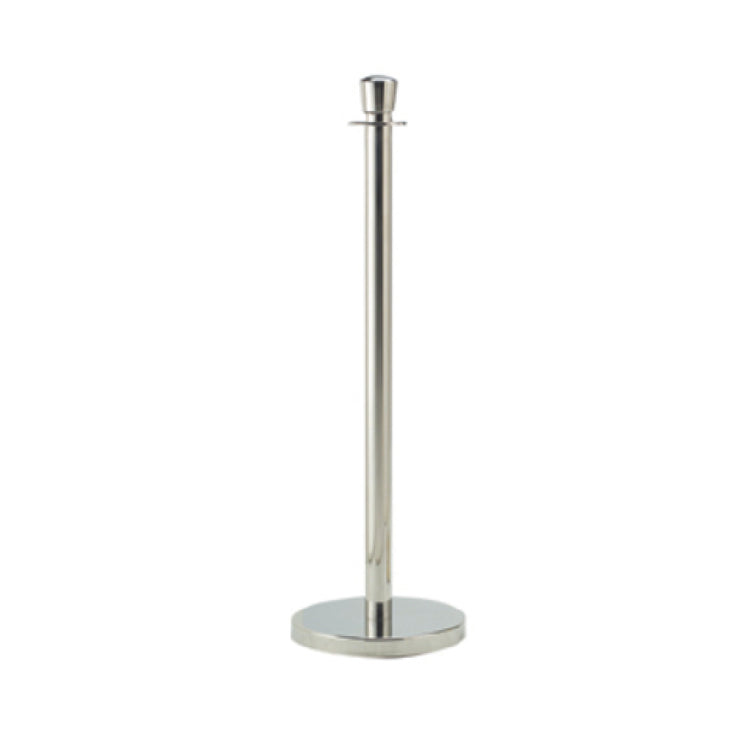 The Aarco LC-7 crowd control post features a polished chrome finish and a 40 lb. flat base with rubber floor guards for enhanced stability and protection. It’s constructed from high-quality metallic components designed for indoor environments, supporting traditional aesthetics combined with durability. The model number LC-7 is equipped with a crown urn top for classic appeal, and the post adheres to standard indoor safety standards suitable for moderate traffic volumes. Its weight and stable base make it a reliable fixture for queue control, while its corrosion-resistant finish reduces maintenance needs over prolonged use. The post measures approximately 10 inches in diameter at the base, with a height appropriate for clear visibility in indoor spaces.