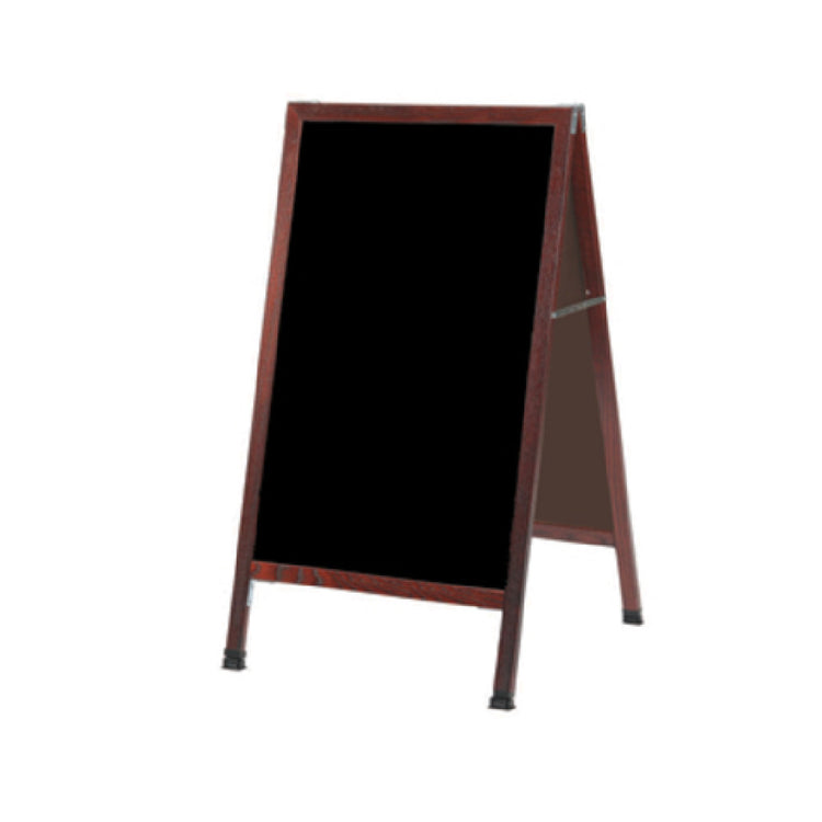 The Aarco MA-1P Sidewalk Markerboard 24"W x 42"H Black Acrylic Board is a durable outdoor signage solution designed for commercial use in sidewalk and street-level advertising applications. Constructed with a high-quality black acrylic surface, it offers excellent visibility and weather resistance. The unit features a solid oak A-frame, steel reinforced corners, full-length piano hinges, and two locking folding hinges, ensuring stability and security in high-traffic environments. The inclusion of weather-resistant hardware and a plastic camel foot floor leveler enhances structural integrity and ease of placement, making it suitable for continuous outdoor exposure and tough conditions. Overall, this sign board provides a professional platform for dynamic messaging in foodservice, retail, or hospitality settings, with precise dimensions of 24 inches wide by 42 inches high, and a weight of 22 lbs for robust portability and straightforward maintenance.