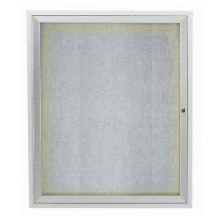 The Aarco ODCC3630RI Aluminum Bulletin Board 30"W x 36"H Enclosed is a professional-grade message display system designed for both indoor and outdoor environments. Constructed with durable aluminum framing and featuring a vinyl surface with burlap weave design, this enclosed bulletin board provides a secure, illuminated area for posting notices in commercial and institutional settings. Its compact 30-inch width and 36-inch height make it suitable for various installation spaces, offering weather resistance and high visibility for effective communication in high-traffic areas, such as outdoor signage or indoor information hubs.