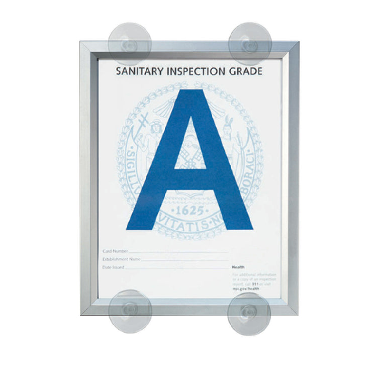 AARCO Products, OTW1411, Window Sign Holder, 14" x 11", (4) suction cups, clear acrylic cover, aluminum frame, Made in USA