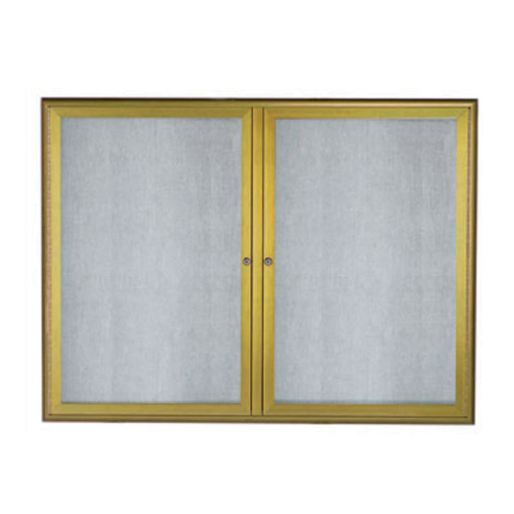 AARCO Products, OWFC3648LB, Waterfall Bulletin Board, 48"W x 36"H, enclosed, contemporary design, burlap weave vinyl surface, aluminum frame, clear acrylic safety glass, full length hinges, lockable, concealed mounting brackets, indoor/outdoor use, antique brass finish