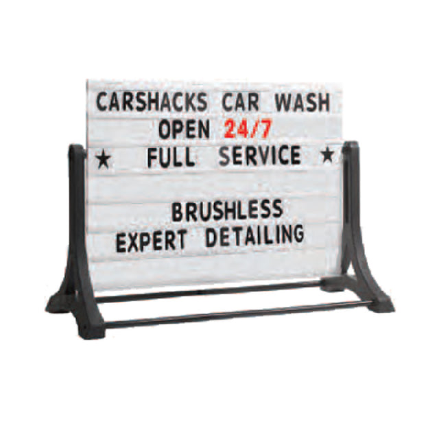The ROC-7 sidewalk sign offers a weather-resistant, frameless white high-contrast letters board with quick-change capability, making it ideal for dynamic menu updates and promotional displays in commercial foodservice settings. Its wind-generated rocking motion enhances visibility and customer engagement, while its durable construction ensures longevity under outdoor conditions. The sign's 56"W x 22"D x 42"H dimensions and included 354 four-inch characters support rapid message adjustments with minimal maintenance, integrating seamlessly into outdoor patio, sidewalk, or streetfront marketing workflows.