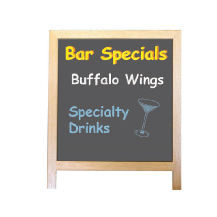 The Aarco TA-1 chalkboard enhances communication in foodservice operations through its solid wood A-frame structure, providing stability and long-lasting use. Its 12" x 14" black chalkboard surface allows for clear, customizable messages, while the lacquer finish protects against marks and wear. Designed for tabletop placement, it facilitates quick message changes with ease of maintenance, suitable for counters, tables, or service stations. Its compact dimensions and durable build ensure dependable signage within busy commercial workflows, perfect for quick updates in hospitality settings.