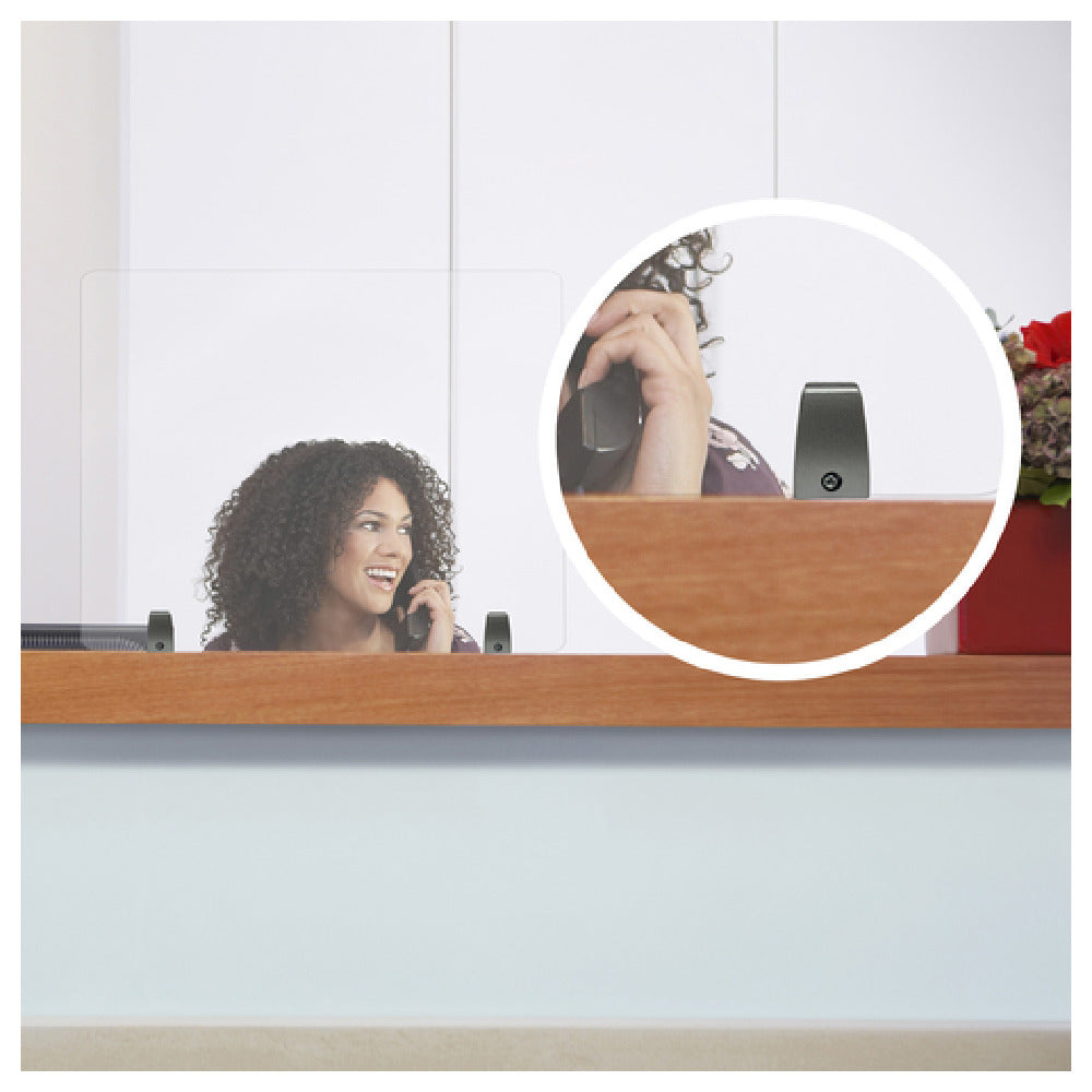 AARCO Products, TCAS, Surface Mount Clamp, for attaching acrylic or polycarbonate protection shields to desktops, supports 1/4" to 3/8" thick panels, uses (6) 1/2" screws (included), PVC, silver