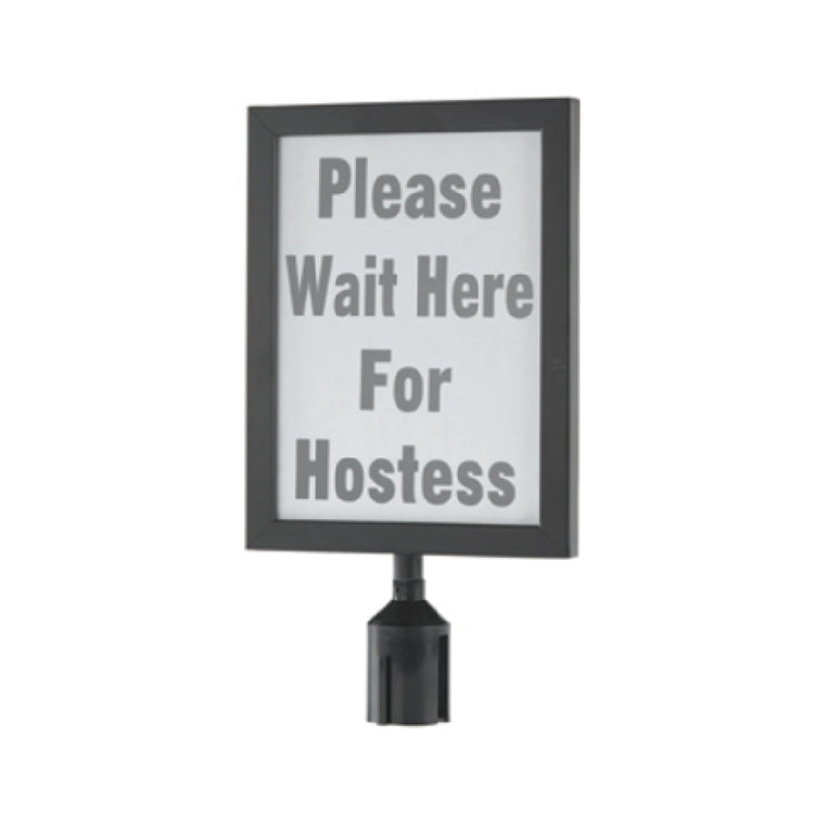 The Aarco VSF1411BK Form-A-Line™ Sign Frame is a commercial-grade vertical sign holder designed for precise display in high-traffic environments. Measuring 11-1/8 inches wide by 14-1/8 inches high, this sign frame supports inserts up to 3/8 inch thick. Constructed from durable materials with a black powder-coated finish, it is intended for mounting to belt-type posts, making it suitable for crowd management, queue control, and directional signage in retail, hospitality, or event settings. Its technical design ensures stability, visibility, and ease of maintenance in busy foodservice or retail spaces.