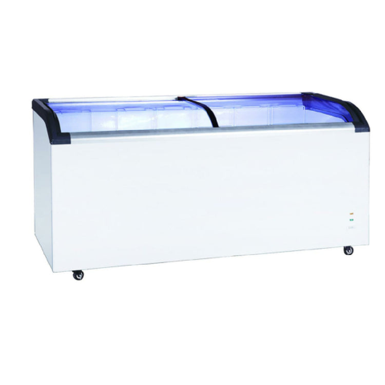 The Admiral Craft BDCF-15-CG Black Diamond Chest Freezer is a commercial-grade refrigeration unit designed for precise cold storage in foodservice environments. With a total capacity of 15.7 cubic feet, this all-white exterior chest freezer features a curved sliding glass lid for easy access and visibility. Its bottom-mounted self-contained refrigeration system utilizes R290 Hydrocarbon refrigerant to deliver reliable temperature control within a range of -4°F to -10°F. The unit integrates five wire-coated baskets for organized storage and LED interior lighting for clear visibility. Weighing 171 lbs, it measures an overall size of 60-1/4"W x 26-4/5"D x 33-1/2"H, making it suitable for mid-volume commercial kitchens requiring consistent frozen storage for food preservation, dessert service, or ingredient batching.