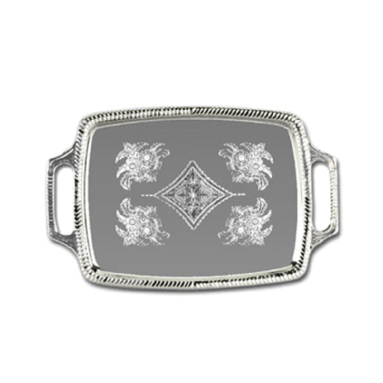 The Admiral Craft CCT-1220 Cater Tray is a professional-grade metal serving and display tray designed for commercial foodservice environments. Measuring 19-1/2 inches by 12-1/2 inches in an oblong shape, this chrome-plated tray features an embossed surface and gadroon edge, enhancing both aesthetic appeal and durability. Its sturdy handles facilitate easy transport, making it suitable for buffet lines, catering operations, and front-of-house presentation. Constructed from high-quality chrome-plated material, it offers resistance to corrosion and frequent cleaning, ensuring long-term use in busy foodservice settings.