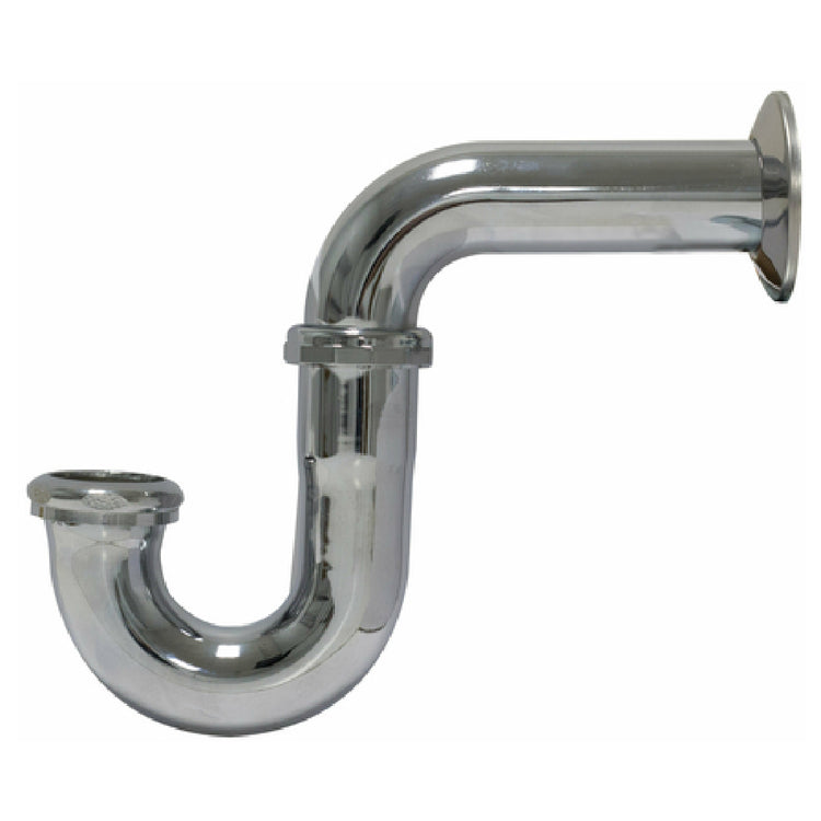A commercial P-trap is a plumbing fitting used in kitchen and restaurant drain systems to prevent sewer gases from entering the workspace. Typically constructed from stainless steel or durable plastic, it features a curved pipe that retains water to seal the drain. The Advance Tabco 7-PS-14 P-trap specifically provides a reliable connection for 1-1/2-inch piping in foodservice establishments, installed beneath sinks or dishwashers to ensure sanitary and odor-free environments, suited for moderate-duty waste drainage in busy restaurant kitchens.