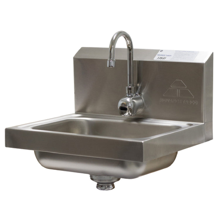 Advance Tabco 7-PS-61 14 Inch Hand Sink Wall Mounted Electronic Faucet Basket Drain