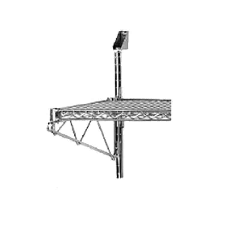 This wall post bracket is designed with a 14-inch depth and weighs approximately 18 lbs per pair, featuring a durable chrome-plated finish that provides enhanced corrosion resistance. The product supports wire shelving with a maximum load capacity aligning with commercial kitchen requirements, while its end-mount installation simplifies assembly. The brackets are engineered using heavy-duty steel with a proprietary finish to withstand frequent cleaning and high-volume usage. Dimensions include an 18-inch total weight, ensuring stability without excessive bulk. These brackets require no electrical connections or plumbing, focusing solely on structural support. Their construction supports standard shelf sizes, and the chrome finish allows for straightforward cleaning, with compatibility for various wire shelving systems. They meet food safety standards through corrosion resistance and ease of maintenance, suitable for a range of storage configurations in restaurant, catering, or institutional settings.