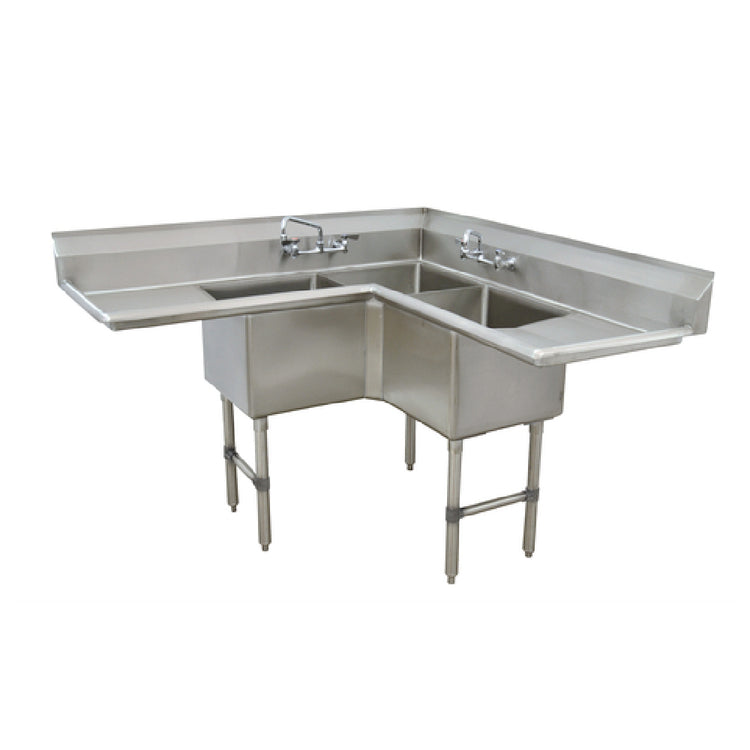 A commercial corner sink is a heavy-duty plumbing fixture designed to maximize efficiency in confined kitchen spaces. Typically constructed from corrosion-resistant stainless steel, these units feature multiple compartments for washing, rinsing, and sanitizing, often including drainboards for drying. The FC-K6-18D model by Advance Tabco is suited for foodservice applications, installed in food prep areas or dishwashing stations, supporting high-volume cleaning operations with durable materials and scalable configurations for mid-volume restaurant service and institutional kitchens.