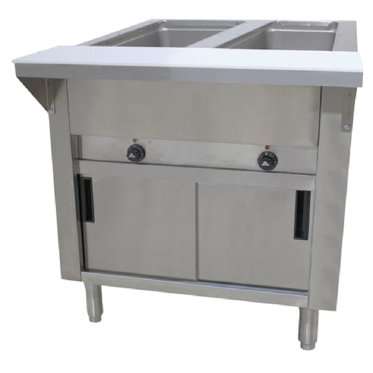 The Advance Tabco HF-2E-120-DR Hot Food Table is a commercial-grade electric serving counter designed for efficient food presentation and maintenance in professional foodservice environments. Featuring a stainless steel top and enclosed stainless steel base, this stationary model measures 31-13/16" in width, 30-5/8" in depth, and stands 34-1/8" high, with a working height of 35". It includes two open wells measuring 12" x 20" each, capable of accommodating pans up to 7-3/4" deep, ideal for holding hot food items at safe serving temperatures. Equipped with individual infinite controls, this unit allows precise temperature adjustments, making it suitable for mid-volume restaurant kitchens, catering services, or institutional cafeterias requiring durable, easy-to-maintain equipment with optimal workflow integration.