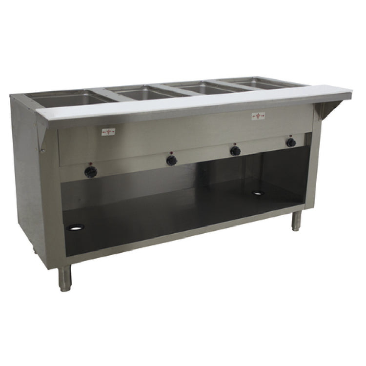 Advance Tabco, HF-4E-240-BS, Hot Food Table, electric, 62-7/16"W x 30-5/8"D x 34-3/8"H, (4) 12" x 20" wells (accommodates pan inserts up to 7-3/4" deep), individual infinite controls, stainless steel top, stainless steel 8”D support shelf with removable 3/8” thick poly cutting board