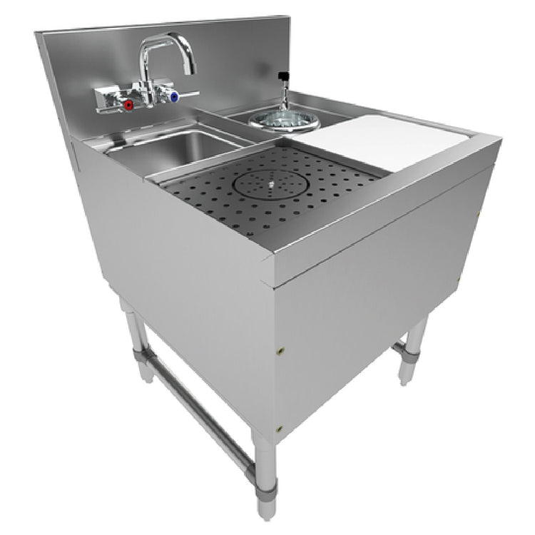 This underbar prep station is suited for bars, prep areas, and secondary wash stations requiring reliable performance and easy upkeep.