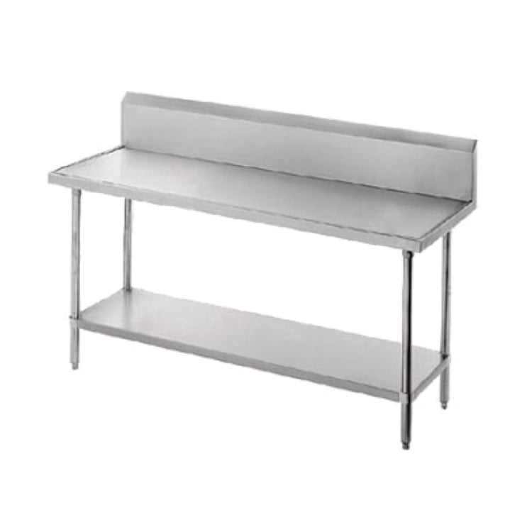 The VKG-305 work table offers a stainless steel top with a non-drip edge, designed for high-performance food prep. Its 14 gauge 304 stainless steel ensures long-term durability and corrosion resistance, while the adjustable galvanized undershelf provides customizable storage. The 10-inch backsplash protects behind-the-line tasks, with galvanized legs and plastic bullet feet simplifying leveling and stability. Suitable for moderate workflow demands, it supports various kitchen operations needing reliable, easy-to-clean work surfaces.