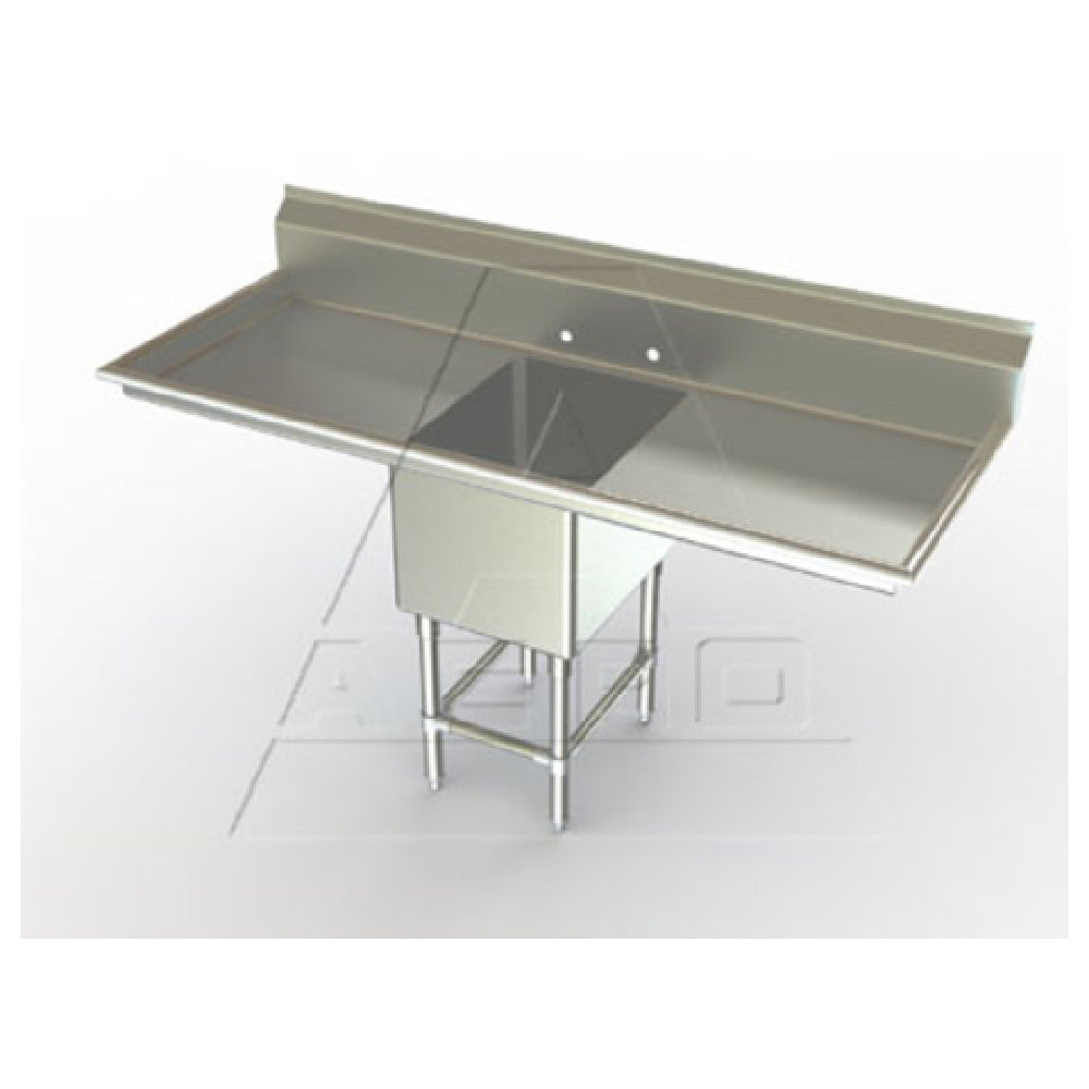 The Aerospec™ Sink is engineered for commercial foodservice use, offering a large single compartment with integral drainboards. Its stainless steel construction ensures long-term durability and ease of cleaning, suitable for intensive daily use. The unit's design facilitates seamless integration into prep lines and wash stations, with adjustable stainless steel legs and cross bracing for stability. Its corrosion-resistant finish simplifies maintenance, while raised edges contain spills, supporting sanitation requirements for high-throughput kitchens.