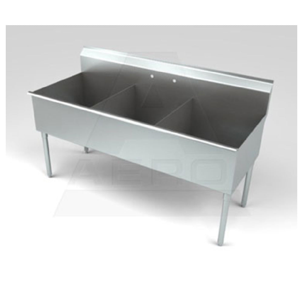 AERO Manufacturing 4S3-2114 42 Inch Economy Sink Three Compartment Stainless Steel with Backsplash