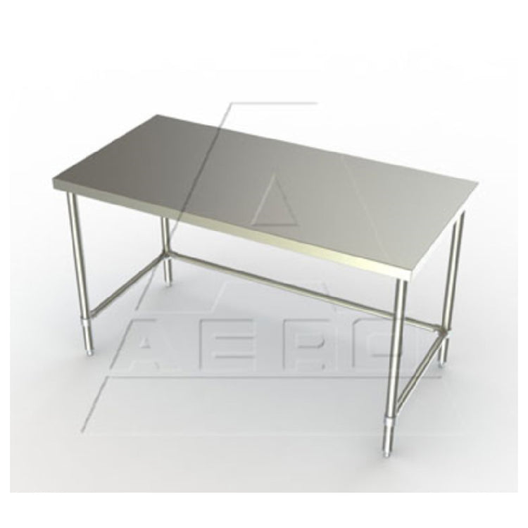 A commercial work table is a professionally designed, heavy-duty surface used in foodservice environments for meal prep, assembly, or equipment placement. The AERO Manufacturing 4TSX-3072 work table, with its NSF-listed 16/430 stainless steel top reinforced with galvanized steel channels, is manufactured for durability, hygiene, and stability in high-traffic kitchens. Installed in restaurant prep stations, deli counters, or catering lines, it supports consistent workflow with a flat, impact-resistant surface suitable for continuous use in busy foodservice settings.