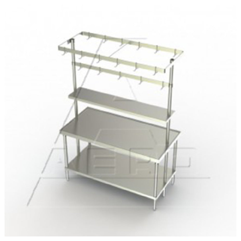 The AERO Manufacturing CFAO-18120 Economy Adjustable Overshelf Table Mount at Center 120"W x 18"D represents a commercial-grade stainless steel overshelf designed for durable and efficient kitchen organization. Crafted from 16 gauge 400 series stainless steel, this single-deck overshelf measures 120 inches in width with an 18-inch depth, offering optimal workspace extension for busy foodservice environments. Equipped with a center-mounted design and 1-1/2" turn-downs on four sides, it provides enhanced product presentation and sanitation. Its robust construction and NSF certification make it suitable for high-volume restaurant or cafeteria operations, facilitating added storage and workflow management with ease of maintenance and stability.