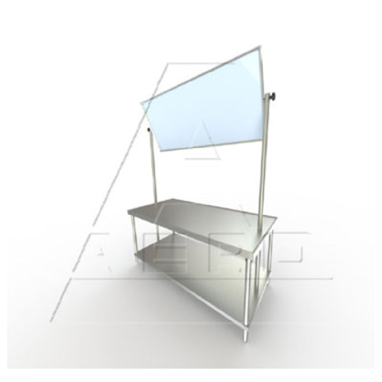 The AERO Manufacturing DEMO-3660 Demo Table is a commercial-grade foodservice workstation designed for precise display and demonstration purposes. Measuring 60 inches in width by 36 inches in depth, this demo table features a robust 14-gauge 300 series stainless steel top with marine edges, ensuring durability and easy cleaning. The unit incorporates a full-length demonstration mirror mounted on a 1-5/8-inch stainless steel tubing frame, reinforced with three steel box channels for stability. Its 1-7/8-inch turn down sides with four sides provide an optimal presentation surface, while an undershelf offers additional storage. Fully welded gussets and adjustable legs with feet facilitate versatile installation in high-use environments where precision and ease of maintenance are critical.