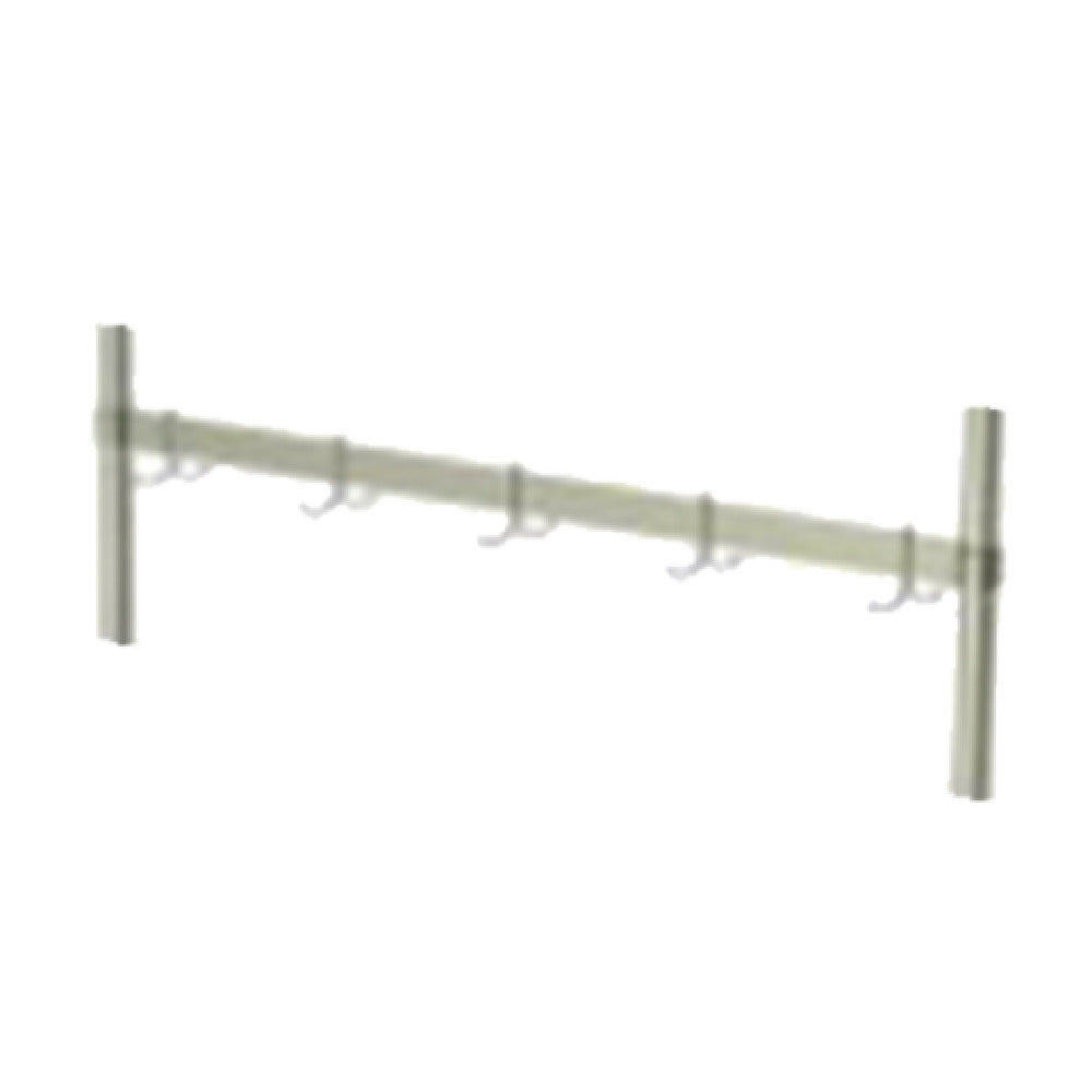 AERO Manufacturing, FUR-96, Utensil Rack, table mount at rear, 96"W, adjustable single-bar design with tubular table supports, fully welded 3/16" x 2" 300 series stainless steel flat bar, includes plated double-pronged pot hooks (one hook per linear foot)