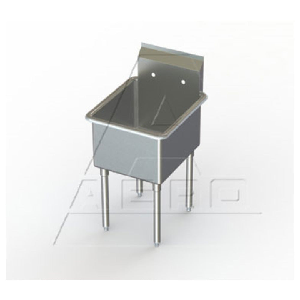 The AERO Manufacturing MF1-2124 Economy Sink One Compartment is a commercial-grade stainless steel fixture designed for high-efficiency foodservice environments. Crafted from durable 16/304 stainless steel, this model measures 27 inches in width, 24-1/2 inches in depth, and stands at 41-1/4 inches tall. It features a fully welded fabrication with a 24-inch wide by 21-inch front-to-back by 14-inch deep compartment, complemented by an 8-3/4-inch backsplash and pre-drilled splash mount faucet holes. The raised rolled edges on the front and sides enhance safety and containment, while stainless steel gussets and adjustable legs with white metal feet ensure stability and ease of installation. This unit integrates seamlessly into commercial kitchens needing a reliable, corrosion-resistant sink for washing or prep tasks without certification overlays.