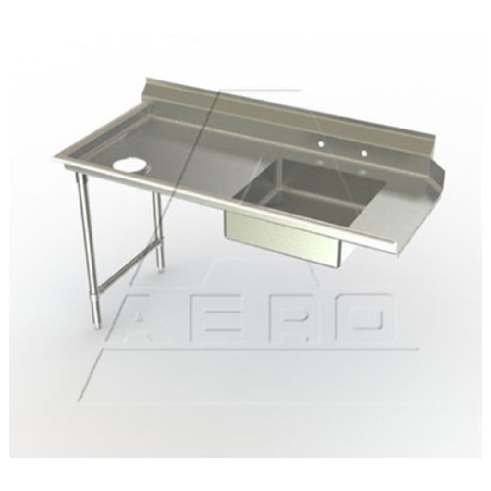 The AERO Manufacturing XSD-L-48 Delux™ Soiled Dishtable features a 48-inch wide stainless steel top fabricated from 16 gauge 300 Series material, ensuring durability and corrosion resistance. Its galvanized legs and side crossrails support a total weight of approximately 135 pounds, facilitating stability during intensive use. The unit incorporates a 7-inch splash height backsplash and a 20" W x 20" D x 5" deep pre-rinse sink, designed for ergonomic waste removal. It is intended for use in busy dishwashing stations where durability, ease of cleaning, and workflow efficiency are critical. The dishtable does not include electrical requirements or refrigeration components, focusing solely on structural and functional design. Dimensions are 48 inches in width, 30 inches in depth, and it weighs 135 lbs. The construction supports safe operation within typical kitchen temperature ranges, with materials suitable for consistent sanitation practices.
