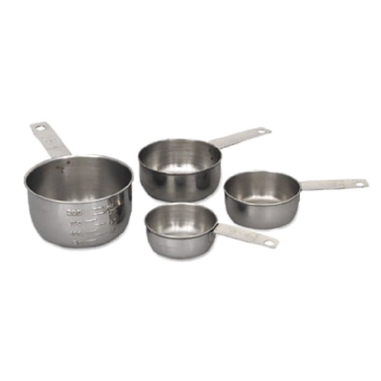Alegacy Foodservice Products, 1190MC, Measuring Cup Set, includes: (1) 1/4, (1) 1/3, (1) 1/2, & (1) 1 cup, round, solid handle with hanging hole, stainless steel (Packed By: 12 Set Per Case)