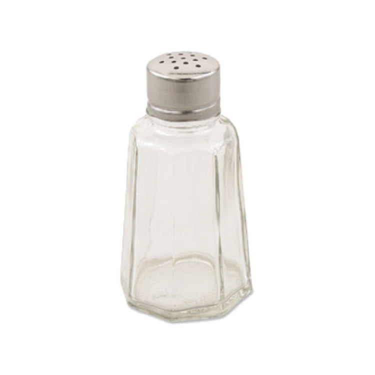 Alegacy Foodservice Products, 153SP, Salt & Pepper Shaker, 2 oz., paneled glass jar, flat shaped universal hole tops, stainless steel (6 dozen per case) (Packed By: Cs)