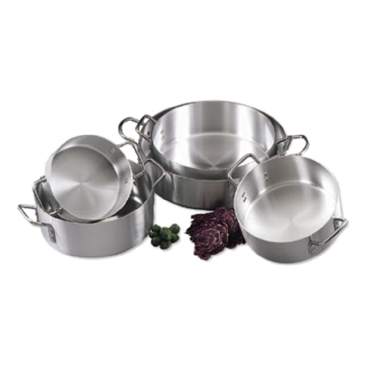 Alegacy Foodservice Products, EWBR24, Eagleware® Brazier, 24 qt., 19" dia. x 4-9/10" deep interior, round, without cover, riveted plated steel handles, 6 gauge aluminum, NSF, Made in USA (Packed By: 1 Each)