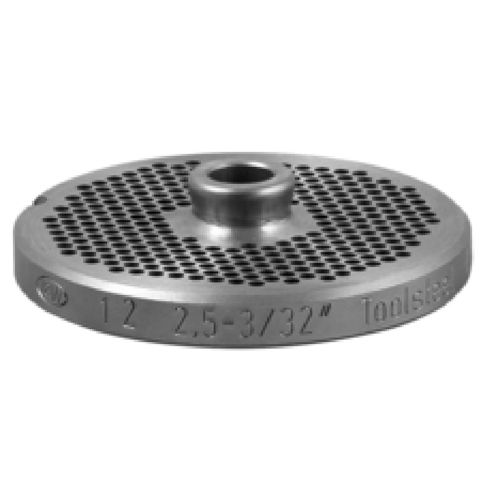 This meat chopper plate is optimized for heavy-duty commercial use, featuring a high-quality carbon steel composition that ensures long-term durability and consistent performance. The 12-gauge hub enhances stability during operation, while its compatibility with specific grinder models facilitates straightforward installation and maintenance. Its precise 3/32" hole size enables efficient meat throughput, reducing clogging and processing time, ideal for mid-volume processing in professional kitchens. Designed for easy cleaning and quick replacement, it supports continuous workflow in high-demand foodservice environments.