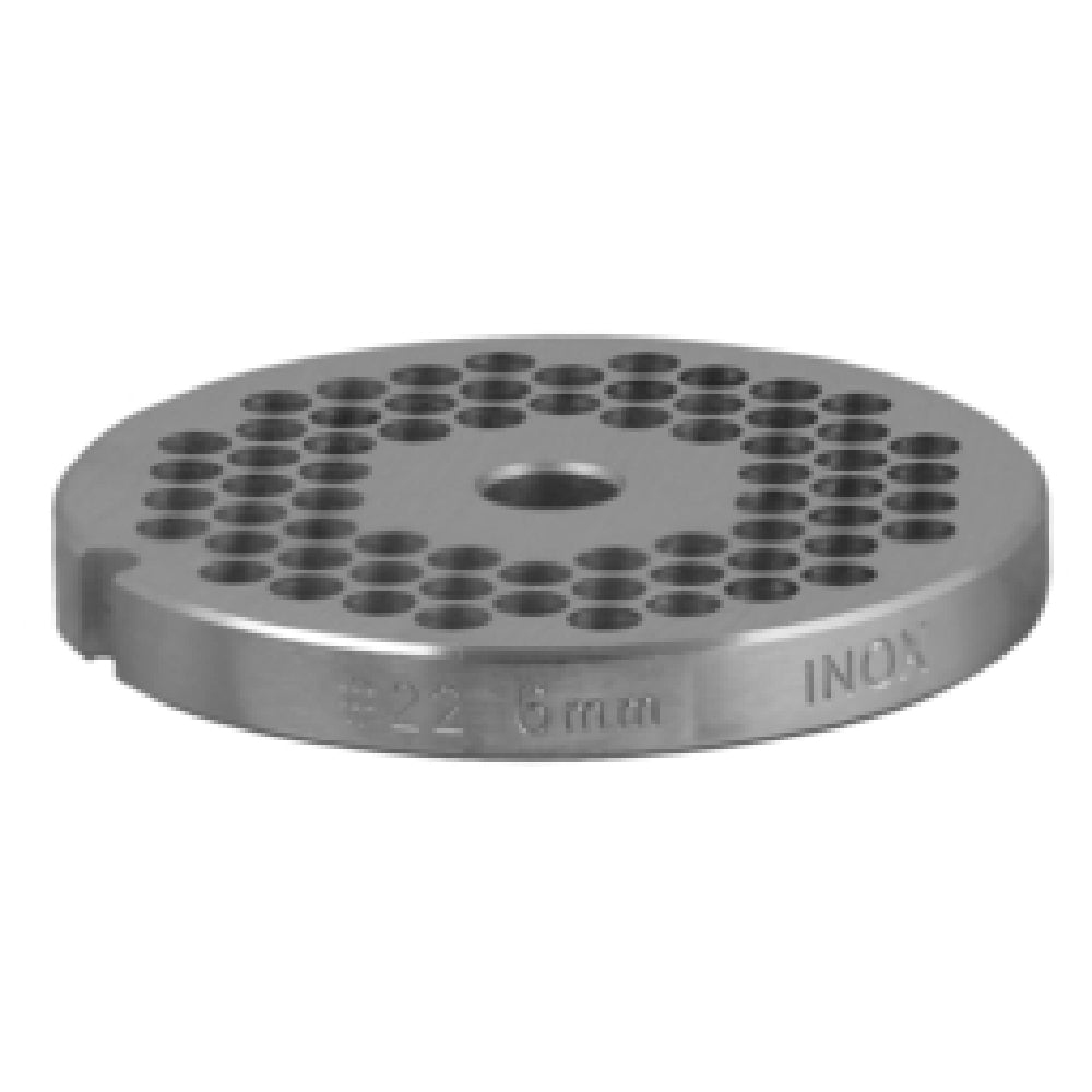 A commercial meat chopper plate is a precision metal component used within meat grinding equipment to control meat texture and portioning. Typically manufactured from stainless steel, these plates feature perforations of specific sizes to achieve desired grind consistency. Installed in meat choppers or grinders, they are essential for foodservice operations such as butcher shops, restaurants, and processing facilities, enabling efficient and hygienic meat preparation. The Alfa 22 014 SS Meat Chopper Plate specifically supports medium-volume workflows, ensuring consistent product quality and operational reliability for high-demand food processing environments.