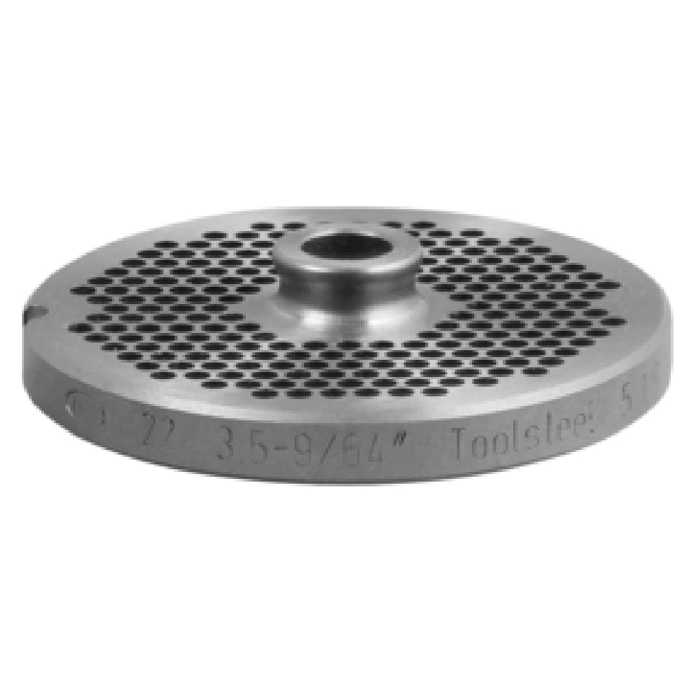 A commercial meat chopper plate is a precision-machined component used in industrial-grade grinders to shred meat into consistent, uniform pieces. The Alfa 22 9/64 HUB plate is specifically designed for high-demand foodservice environments, such as butcher shops, meat processing plants, and large-scale kitchens. Installed in meat grinding equipment, this plate ensures efficient, reliable operation with its precise hole size and durable steel construction, making it suitable for medium-output workflows and supporting consistent product quality in high-volume settings.