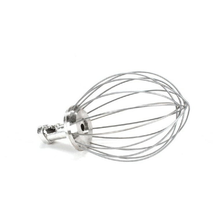 A commercial wire whip is a heavy-duty mixing attachment designed for use with large-capacity stand mixers, particularly in foodservice operations. It features a series of stainless steel wires configured to incorporate air into ingredients, creating light and consistent batters, emulsions, or whipped products. Widely installed in bakery, catering, and institutional kitchens, the wire whip for the GE/Hobart 00-295163 model facilitates high-volume mixing tasks. Its robust construction ensures durability under continuous commercial use, making it ideal for commercial kitchens that demand reliable, efficient performance.