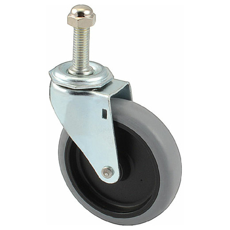 A commercial caster stem is a mounting component used to attach swivel or rigid casters to mobile equipment, carts, or furniture within foodservice or industrial settings. It provides a secure fit for caster wheels, facilitating smooth mobility, load support, and maneuverability in demanding workflows. The Lockwood CAS-41TH features a 4-inch diameter wheel, a 1/2-inch diameter threaded stem with 13 threads, and a durable black finish. Installed in carts, mobile racks, or kitchen equipment, it ensures reliable operation, ease of maintenance, and long-term durability—making it ideal for moderate-volume foodservice operations and equipment mobility.