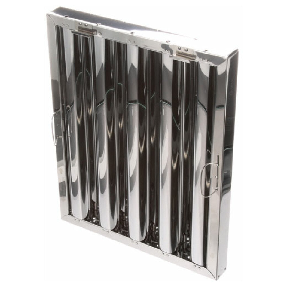 This stainless steel baffle filter is engineered for commercial kitchen ventilation, offering high grease capture efficiency and easy maintenance. Its rugged construction withstands frequent cleaning cycles, while the integrated bottom bracket simplifies installation within standard hood assemblies. Designed for medium throughput kitchens, the filter improves airflow, reduces fire hazards, and is suitable for continuous operation in busy foodservice facilities. Its precise dimensions and durable material support seamless integration into existing exhaust systems, ensuring optimal ventilation performance.