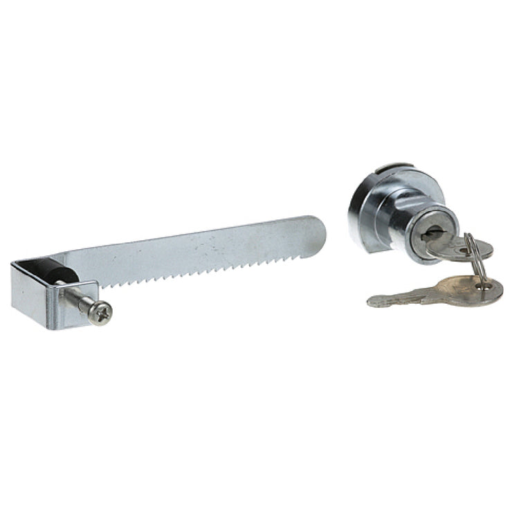 The AllPoints P22-0006 lock stands out through its robust steel construction with chrome plating, ensuring high durability and corrosion resistance in demanding commercial environments. Its compact design, universal key compatibility, and easy installation process improve operational efficiency and security management. This model’s reliable performance and precision dimensions make it a superior choice over competing locks for sliding glass doors in restaurant, retail, and hospitality applications.