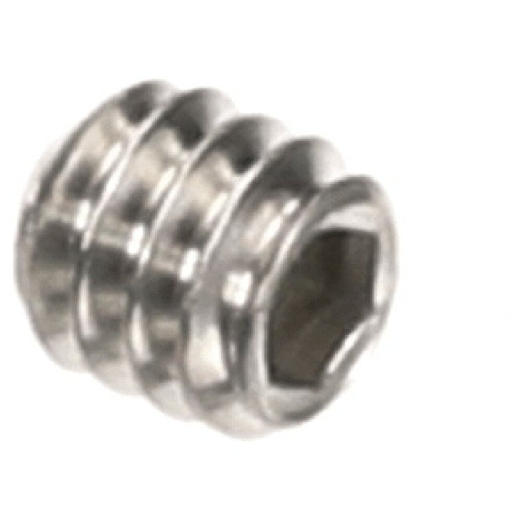 A commercial set screw is a precision fastener used to secure or locate components within machinery or equipment assemblies. Designed for industrial applications, these screws typically feature a standardized thread profile, such as 1/4-20, and are made from durable materials like stainless steel to withstand wear and corrosion. The GE/Hobart SC-131-63 set screw exemplifies this category, providing a flush-mounted fastening solution commonly installed in food processing or industrial equipment to ensure stable, long-lasting connections. Its specific dimensions, flat head design, and threading make it suitable for a wide range of precise assembly tasks, especially in environments demanding reliability and ease of maintenance. This fastener is ideal for securing parts in machinery or devices used in high-volume foodservice settings and manufacturing.
