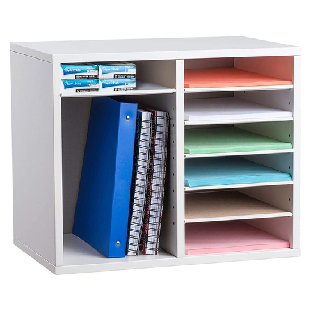 The ADI500-12-WHI paper sorter offers a versatile solution for document filtration in busy office or hospitality environments, featuring adjustable compartments aligned for quick customization. Its robust wood construction ensures longevity under frequent use, and the white finish complements professional decor. Ideal for organizing literature, forms, or small supplies, it facilitates rapid access and streamlined workflow management. Designed for moderate throughput, it supports efficient sorting in commercial spaces with multiple staff members handling documentation daily.