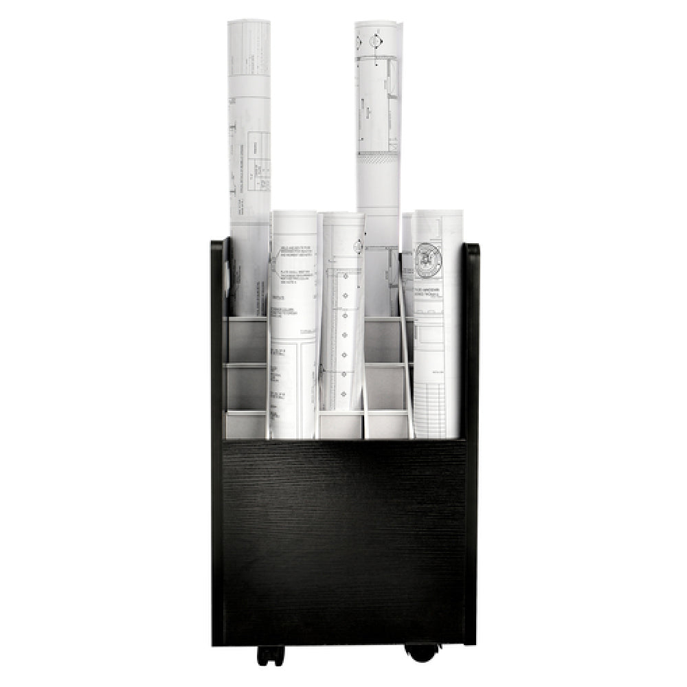 The Alpine Industries ADI624-BLK Blueprint Roll File and Large Document Organizer is a mobile storage solution designed for efficient document management in commercial environments. Constructed from durable wood with a sleek black finish, this organizer features twenty slots capable of holding large blueprints, plans, or technical documents. Its compact dimensions of 15.25" W x 13.25" D x 24.75" H enable easy mobility and convenient integration into busy workflows, making it ideal for architectural firms, engineering offices, and construction project management teams seeking a reliable large document storage solution with enhanced portability and organization.