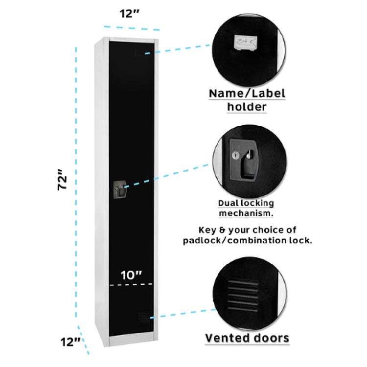 Alpine Industries ADI629-201-BLK 15 Inch Locker Single Tier Steel Black Finish