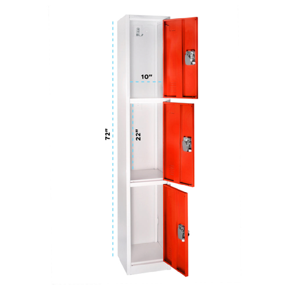 Alpine Industries ADI629-203-RED 12 Inch Triple Tier Locker Steel Red Finish