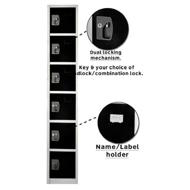 Alpine Industries ADI629-206-BLK 12 Inch Steel Locker Six Compartment Black Finish